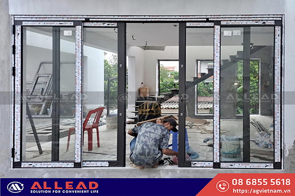 Sản phẩm cửa nhôm hệ 4 cánh kính cường lực cao cấp của Showroom cửa Allead đảm bảo độ bền và an toàn tối đa.