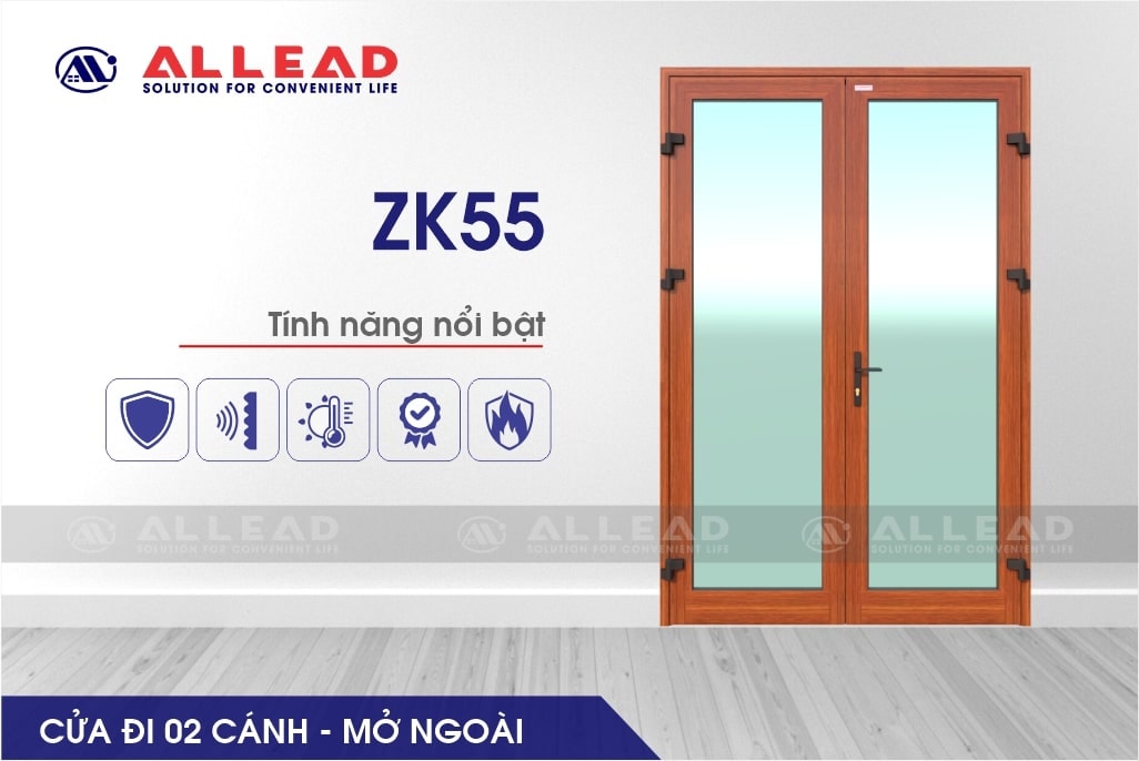 Sản phẩm cửa đi 2 cánh mở ngoài hệ ZK55 do Allead thiết kế và sản xuất có nhiều ưu điểm vượt trội so với các dòng cửa khác. Cụ thể một vài những đặc tính nổi bật của sản phẩm cửa nhôm kính cao cấp hệ ZK55 như: