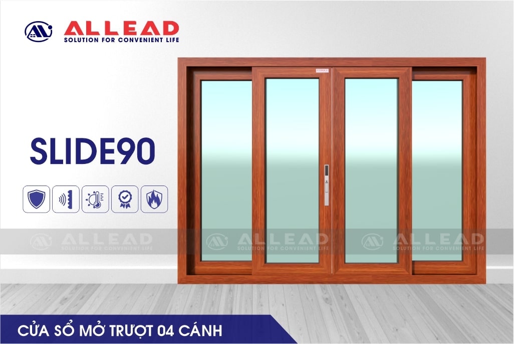 Mẫu cửa sổ mở trượt 4 cánh SLIDE90 của Allead với nhiều ưu điểm nổi trội
